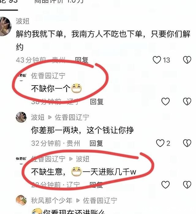 刚开始,佐香园还挺维护自家代言人的,回怼网友:不缺你一个、不缺生意。